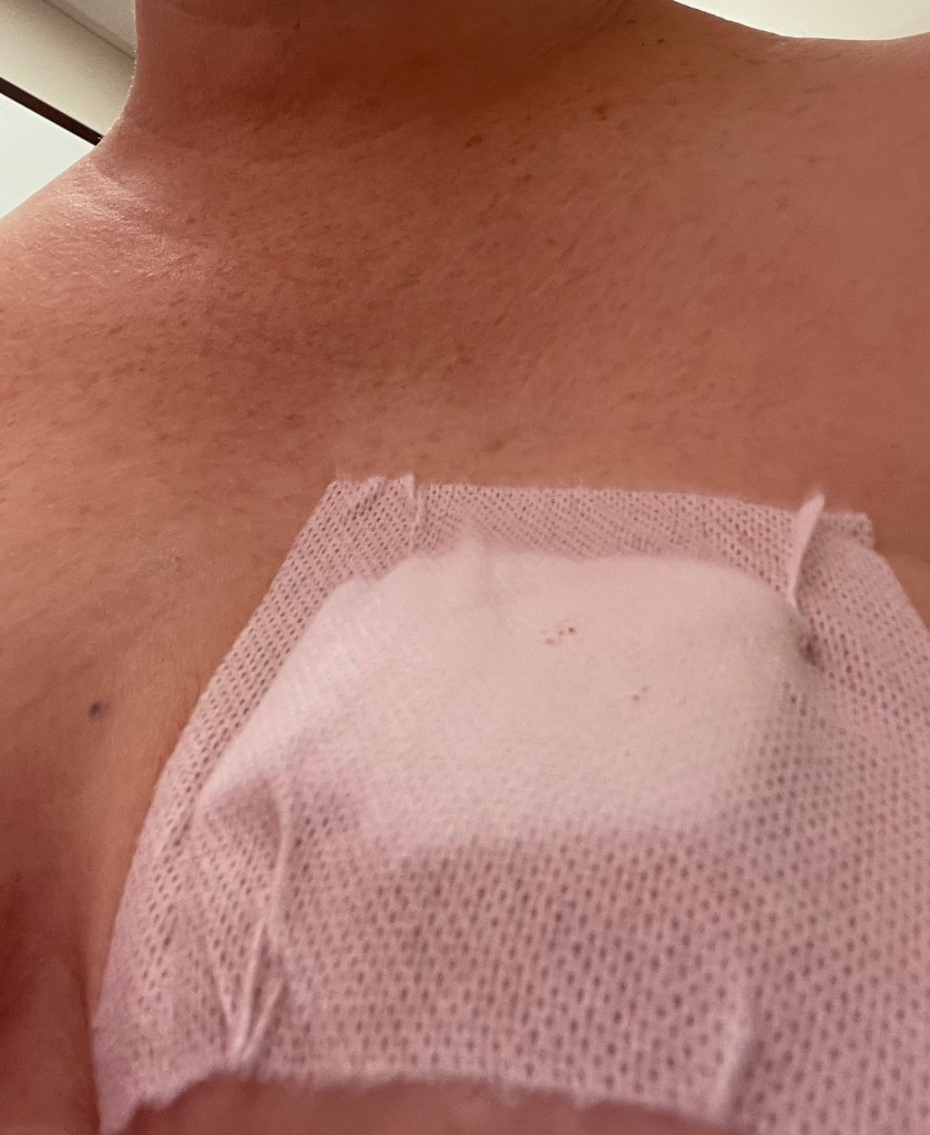 Here is the small bandage from the biopsy where I was able to see the tumor and learn more about it.